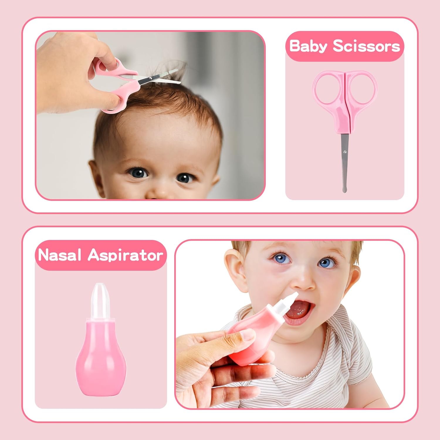 - Safe Baby Grooming Kit: In order to make every baby always get good grooming and health, we designed this grooming kit. The baby care kit are made of high quality stainless steel and BPA-free plastic, and it is safe to use to reassure parents.