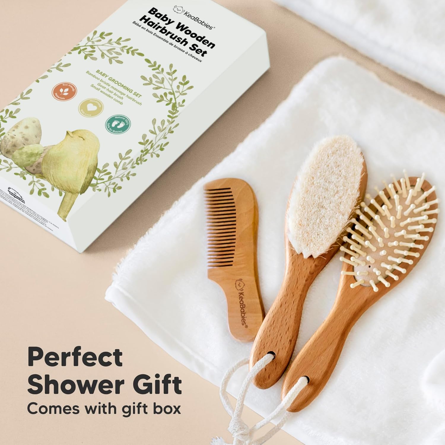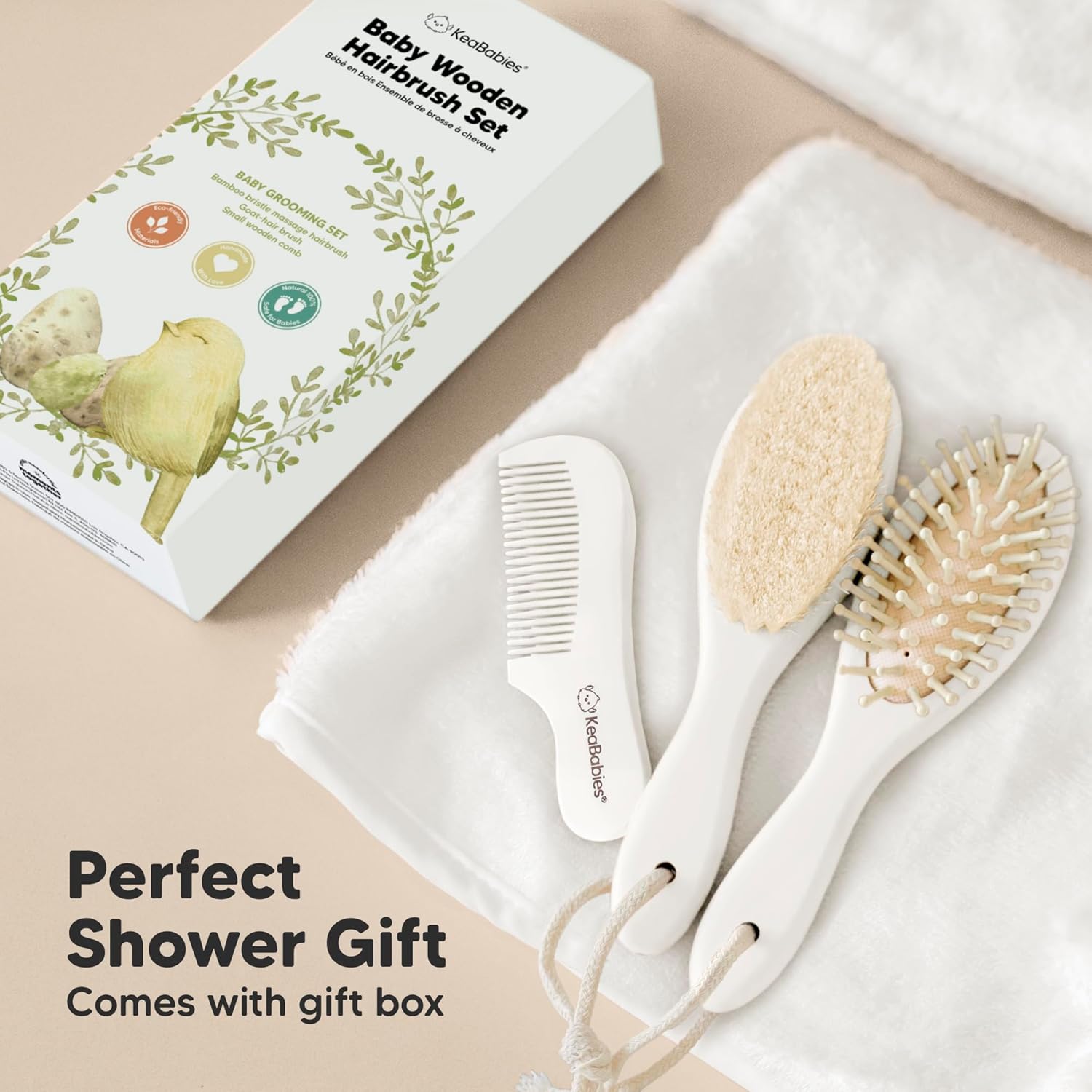 - Perfect Baby Shower Gift For Boys & Girls - Our wooden baby brush comes in a 3-in-1 full hair grooming set, which grows with the baby. Beautiful gift box included.
