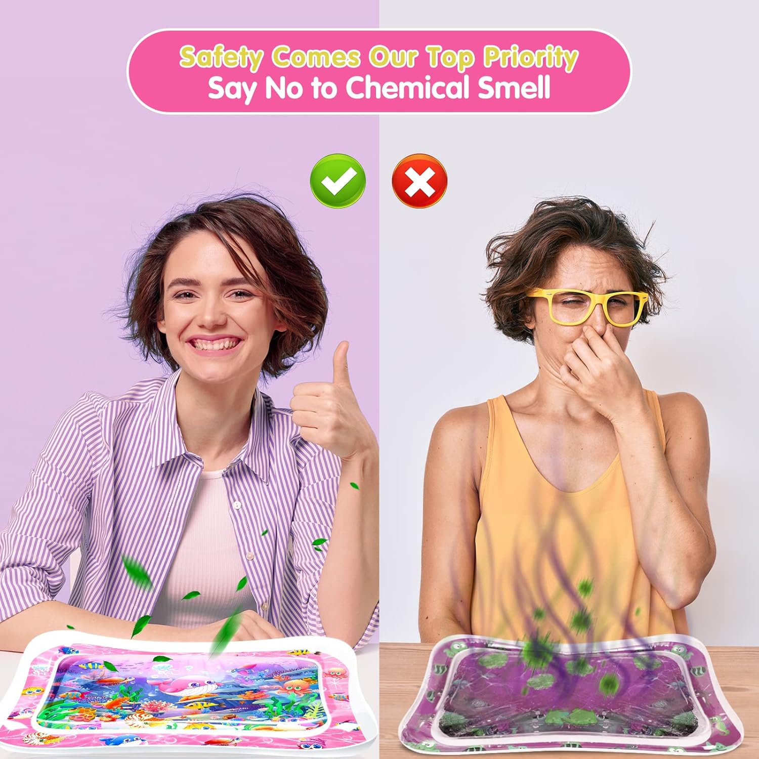 - Superior quality and 100% leak-proof: Our baby water mats are made from durable, 100% BPA-free and non-toxic, heavy PVC materials. Each of our game mats has been rigorously tested. It is durable and waterproof, so it doesn't wet your baby's body.